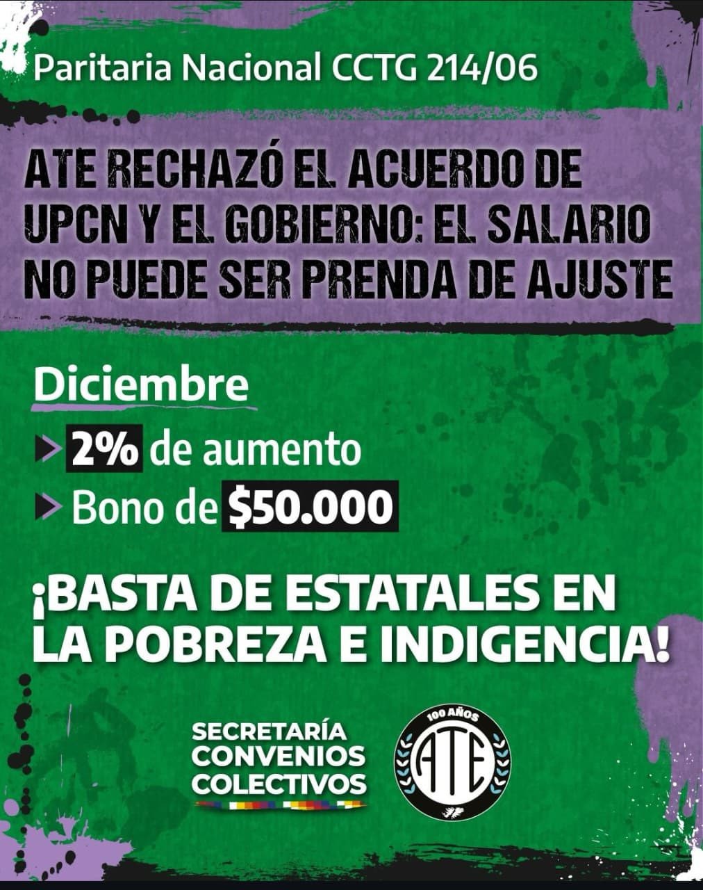 "Paritaria Miserable y un Bono Insuficiente: ATE Rechaza la Oferta del Gobierno y Anuncia Medidas de Fuerza"
