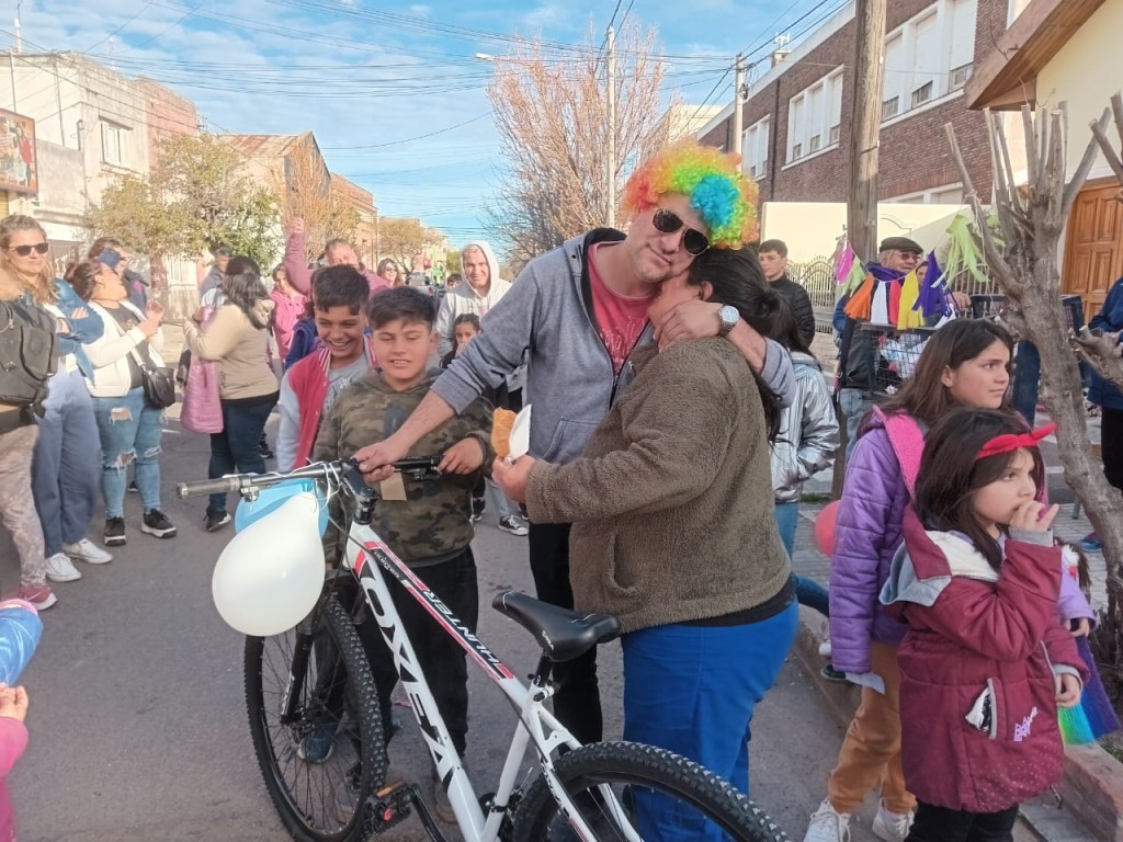 Lo pintoresco de la tarde fue que toda la comision directiva que acompaña al secretario general se vistieron para la ocacion,pelucas coloridas tipo payasos y el maquillaje que no falto le dieron ala tarde ese toque especial, luego de jugar con los juegos dispuestos en toda la calle Paso, los chicos disfrutaron de una gaseosa y facturas, para el cierre se sortearon una gran cantidad de regalos que comerciantes y otros aportantes hicieron llegar, al final de la tarde se sortearon 3 bicicletas nuevas para delirio y alegria infinita de los chicos,los papas felices de pasar un momento especial, asi trabaja la comision directiva del sindicato de trabajadores municipales con Marcelo Sotile a la cabeza, por y para la familia Municipa!!!