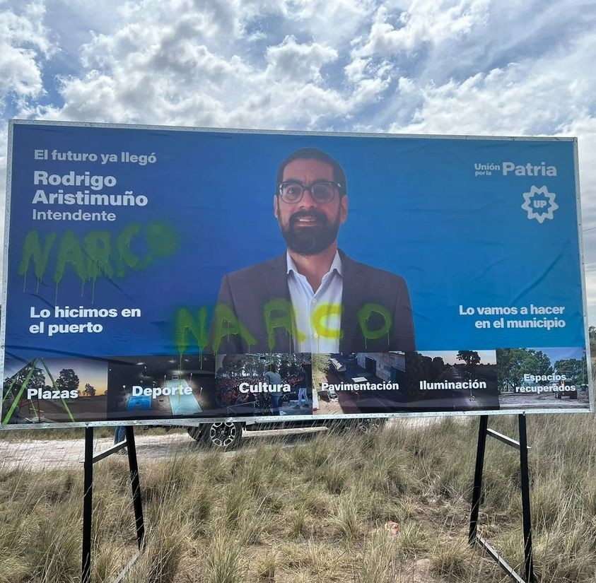 En las redes sociales y en los medios provinciales, se ha difundido la historia de un familiar de un candidato involucrado en actividades delictivas (lo cual resulta llamativo por el costo que conlleva el anuncio, alguien lo financia y no es económico). Esto es un golpe bajo en toda regla. Además, las fuertes declaraciones de dirigentes oficialistas en relación al manejo del puerto, las denuncias de corrupción y, para rematar, el vandalismo al cartel con la palabra "Narco" apenas dejan lugar a dudas sobre los autores.
