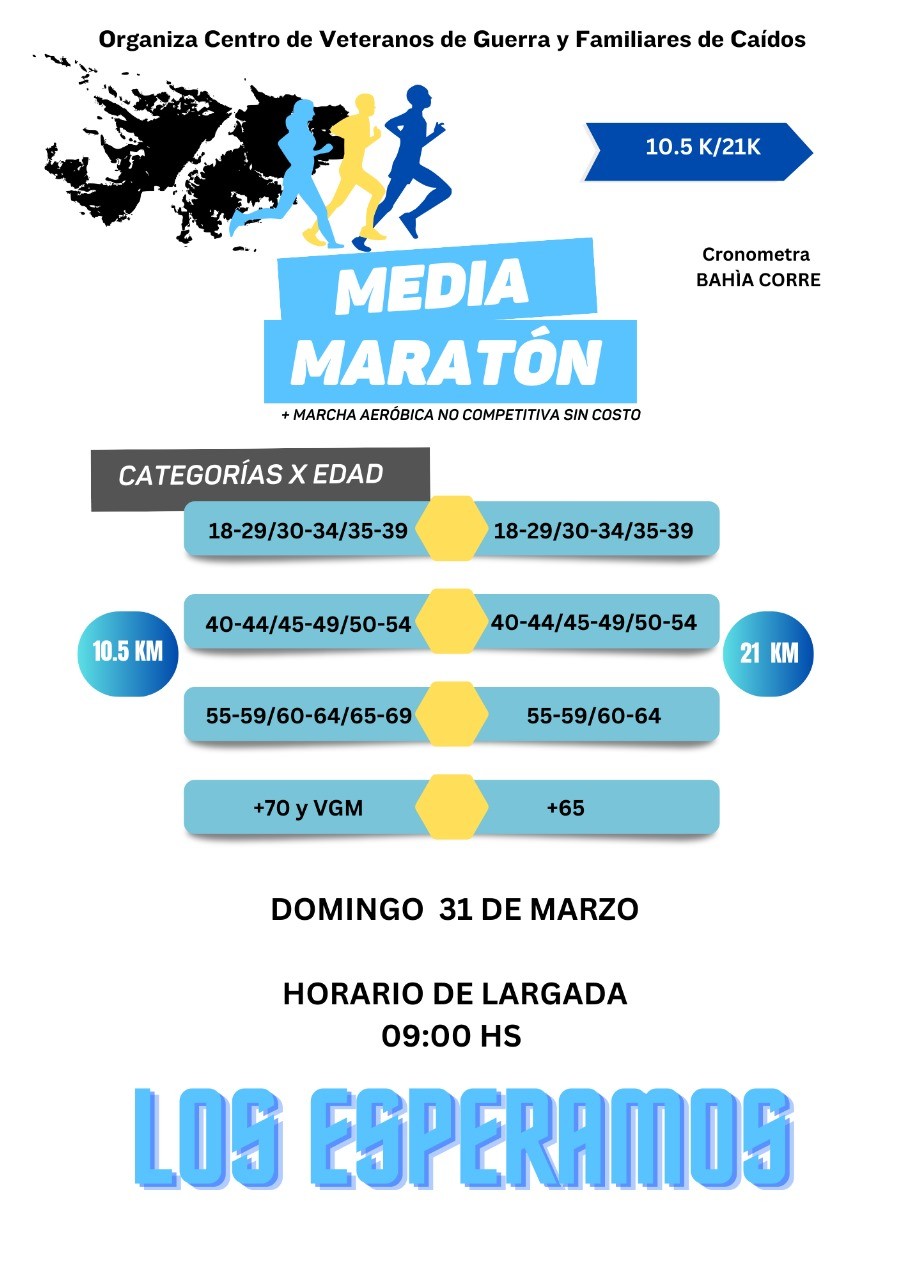 Domingo 31: 09:00 hs- Media Maratón Gesta de Malvinas. Largada desde el Centro de Veteranos ubicado en Villanueva y Paso.