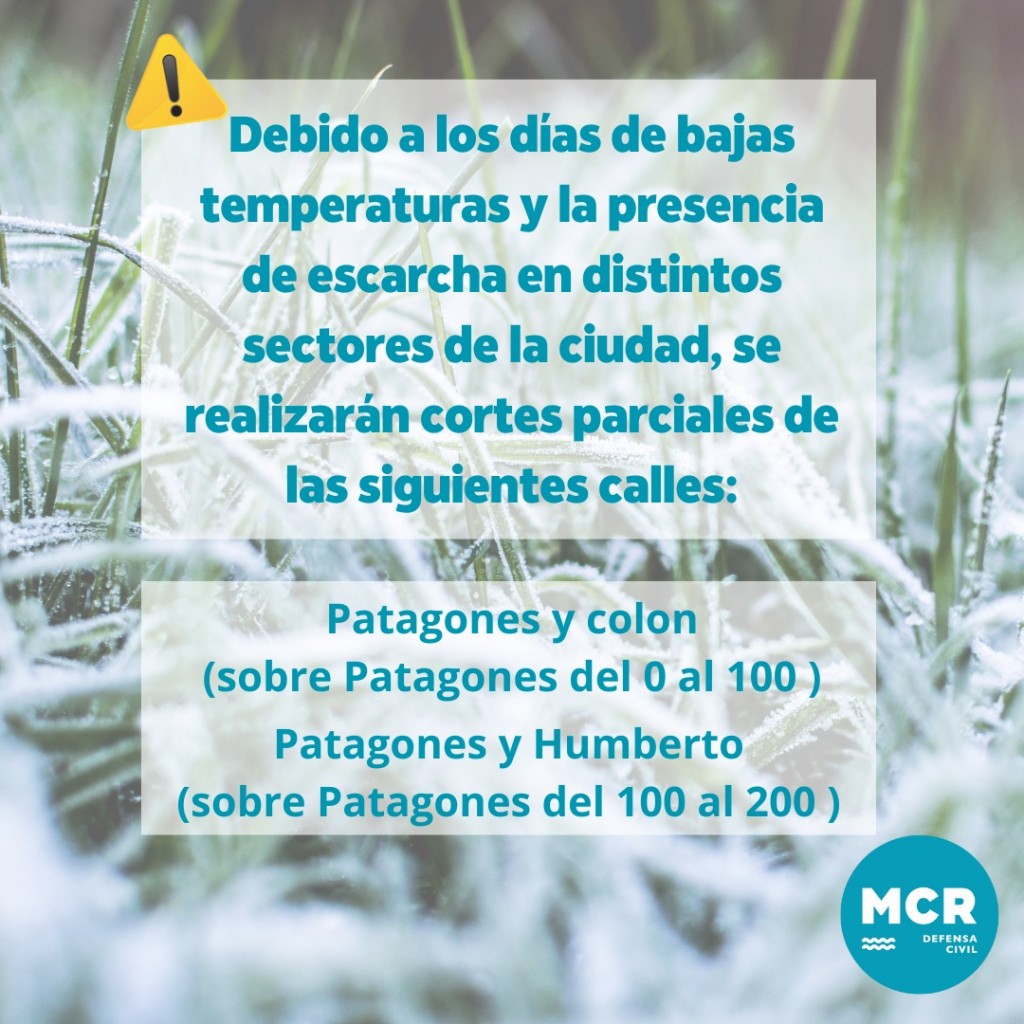 Debido a los días de bajas temperaturas y la presencia de escarcha en distintos sectores de la ciudad se realizarán cortes parciales de las siguientes calles: