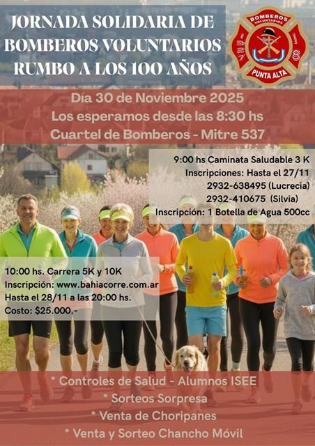 La Asociación de Bomberos Voluntarios de Punta Alta invita a participar de la Jornada Solidaria “Rumbo a los 100 años”, que se realizará el Domingo 30 de Noviembre, desde las 8:30 horas, en el Cuartel de Mitre 537.