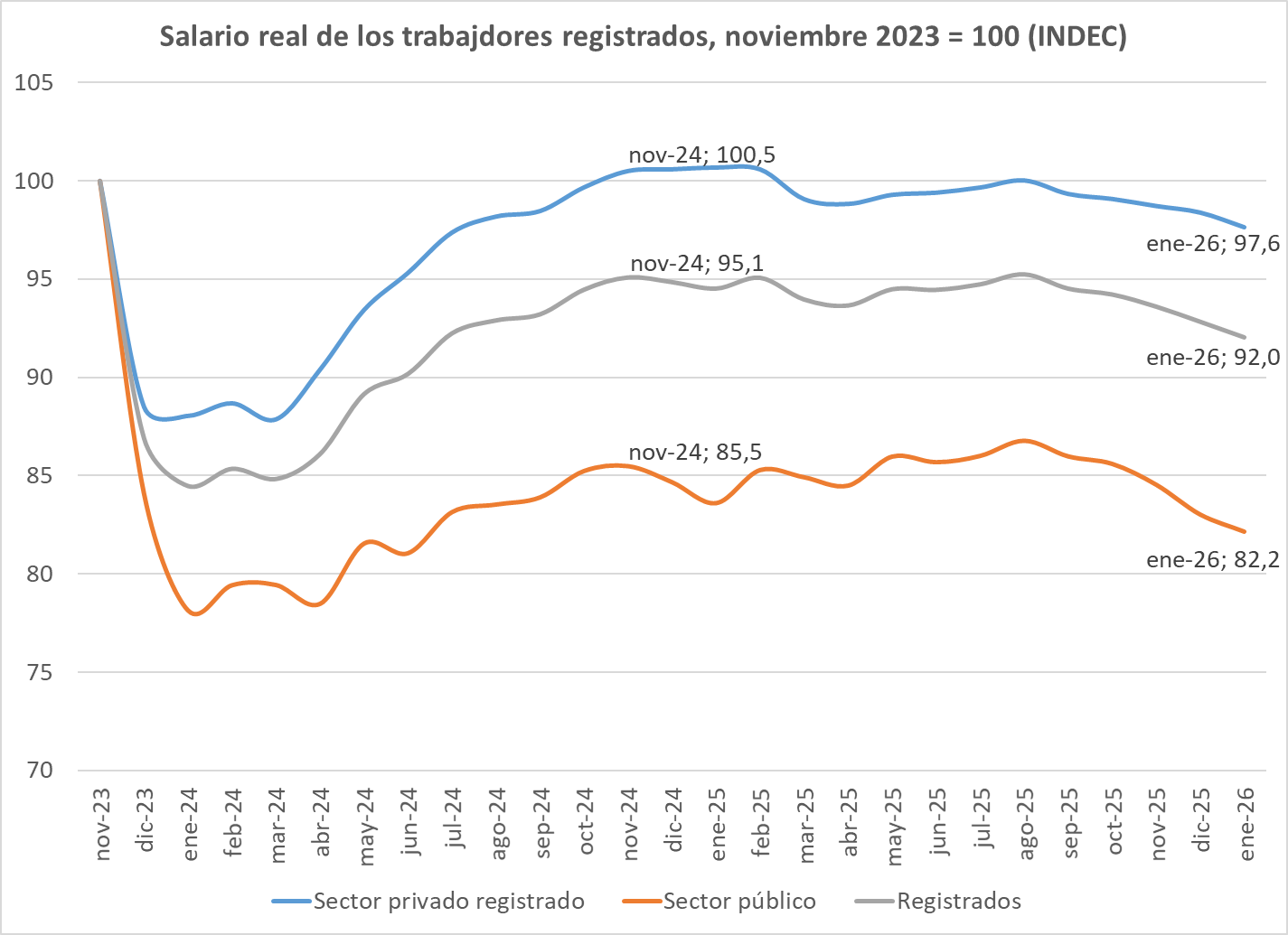 Evolución de los salarios Evolución de los salarios durante el Gobierno de Javier Milei. (Luis Campos)