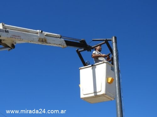 Los trabajos son realizados en forma conjunta por personal municipal de la delegación, a cargo de Jorge Villarmea, y el los equipos de la Secretaría de Servicios de electricidad e iluminación.