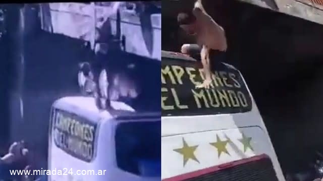 Dos hinchas se tiraron arriba de la caravana de la Selección desde un puente
