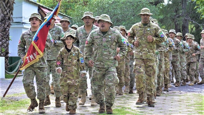 Luego, el niño formó a la cabeza con los Infantes y a paso firme marchó por las instalaciones de la Unidad, finalizando en la Pista de Monte. Allí, recorrió cada posta y se interiorizó de las capacidades y el material de supervivencia que emplea el personal durante el cumplimiento de sus tareas, recibiendo su propio equipo de combate.
