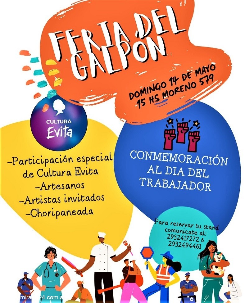 Una jornada donde compartiremos un ¨Choripam¨, disfrutaremos de intervenciones artisticas en canto y baile, habra stand para artesanos que quieran ofrecer sus productos, para solicitar espacio al tel.417272 o 494461.