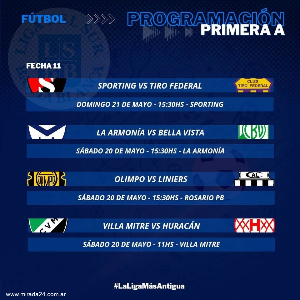 El partido entre Villa Mitre y Huracán se llevará a cabo sin la presencia de público visitante. El encuentro entre Pacífico (BB) y Sansinena se llevará a cabo sin la presencia de público visitante. El partido entre Libertad y Rosario PB se llevará a cabo sin la presencia de público visitante.   Esta es la fecha 11   FUENTE: LIGA DEL SUR