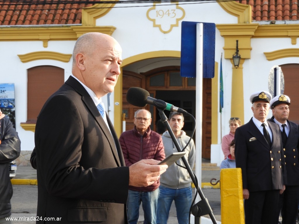 El acto se desarrolló ante la presencia de un gran número de autoridades y representantes de instituciones encabezadas por el intendente Uset, la diputada provincial Abigaíl Gómez, y el presidente del Concejo Deliberante, Nicolás Aramayo, además autoridades legislativas, políticas, provinciales, de la Armada y representantes de las distintas instituciones del distrito.