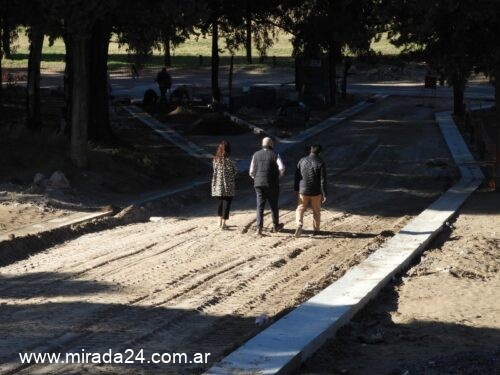 Días atrás se dio inicio a la colocación de adoquines de pavimento articulado en una de las calles internas del Parque San Martín. El intendente Mariano Uset, junto al presidente del Concejo Deliberante, Nicolás Aramayo, y la secretaria de Obras, Milagros Medina, recorrieron el avance de las obras este viernes.