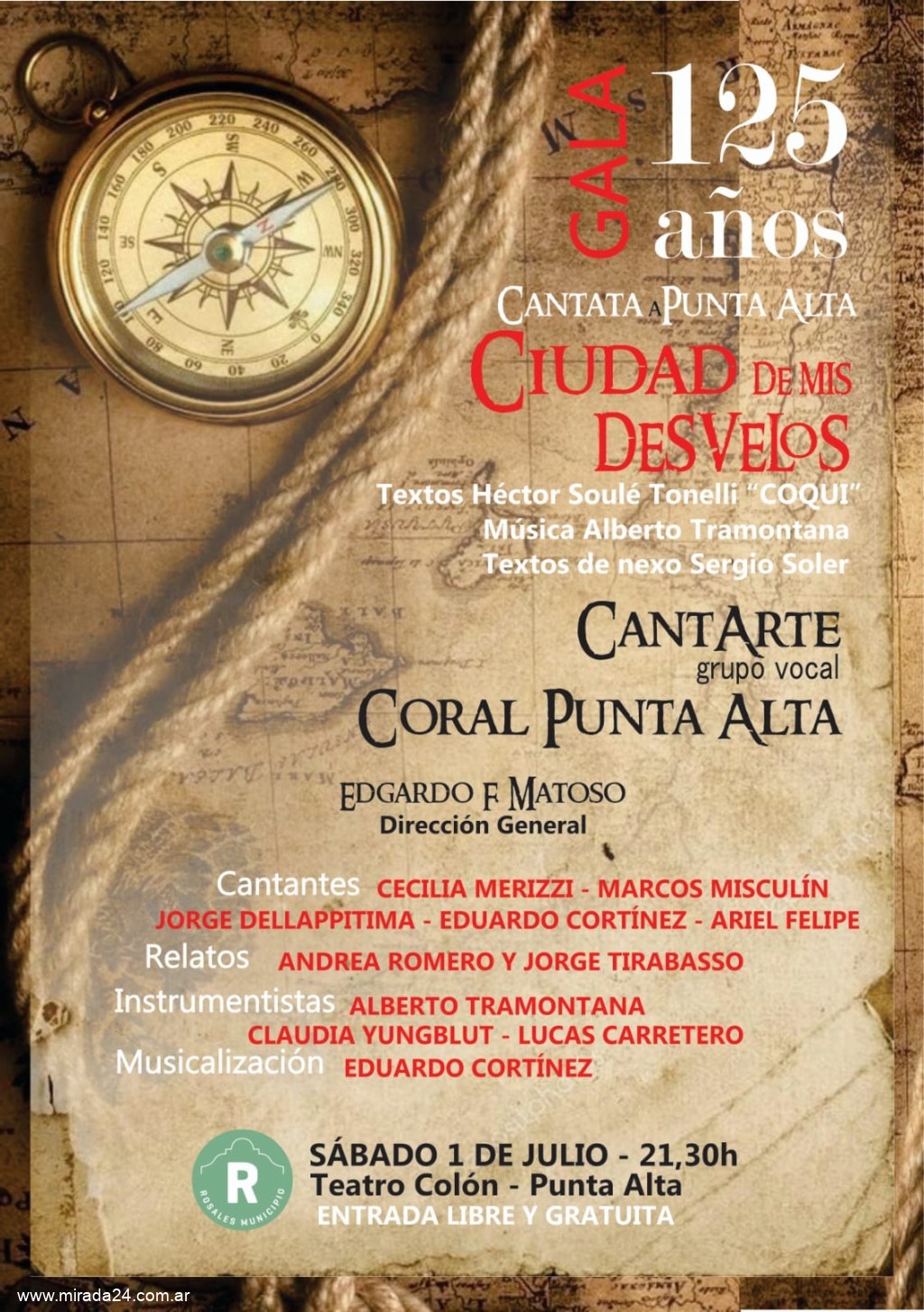 Gala 125º Años-Cantata Punta Alta ¨Ciudad de mis Desvelos¨, con textos de Hector Soule Tonelli, Sergio Soler en los textos anexos y la musica de Alberto Tramontana, un trabajo de lujo para la previa del aniversario Dirigido por el Maestro Edgardo Matosso.