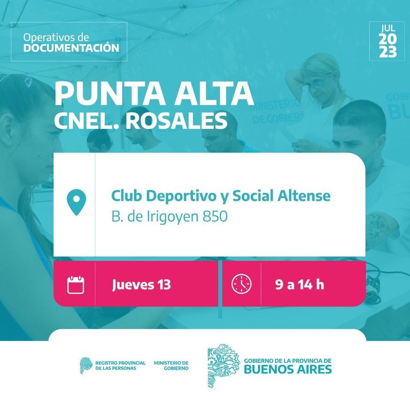 Operativos de Documentación se realizara el dia JUEVES 13 en Irigoyen 850, Club Altense De 9 a 14 hs! veni a regularizar tus documentos.