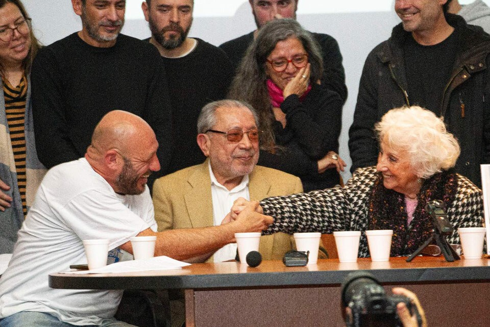 El auditorio de la Casa por la Identidad desbordaba de gente cuando, pasadas las 13, se abrió una puerta lateral y apareció Miguel Santucho. La sonrisa del “Tano” Santucho –como todos lo conocen en el movimiento de derechos humanos– delató una noticia que hacía tiempo se esperaba: había encontrado finalmente a su hermano, el hijo que su mamá, Cristina Navajas de Santucho, había parido en el Pozo de Banfield. El Tano saludó con el puño en alto un aplauso que envolvía la sala. Con el otro brazo, apretó a su papá, Julio Santucho –sobreviviente de una familia diezmada por el genocidio–, y los dos se acomodaron en una mesa junto con Estela de Carlotto para contar que dos búsquedas habían tenido un final feliz: la suya y la de un muchacho que tiempo atrás se había acercado a Abuelas de Plaza de Mayo con dudas. “Él hizo todo lo posible por recuperar su identidad”, celebró Julio.