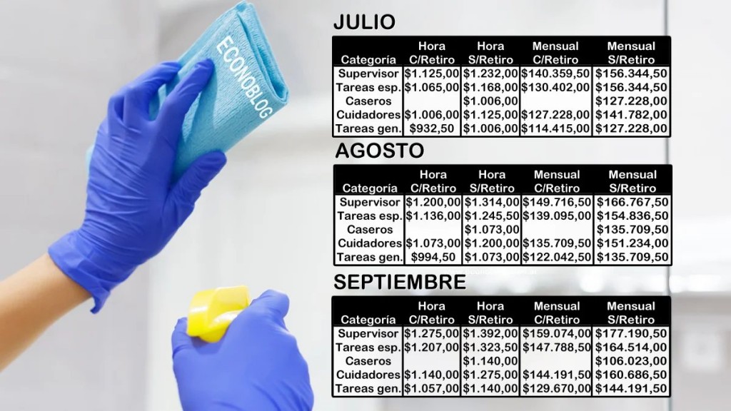 Sueldos básicos del servicio doméstico en julio, agosto y septiembre