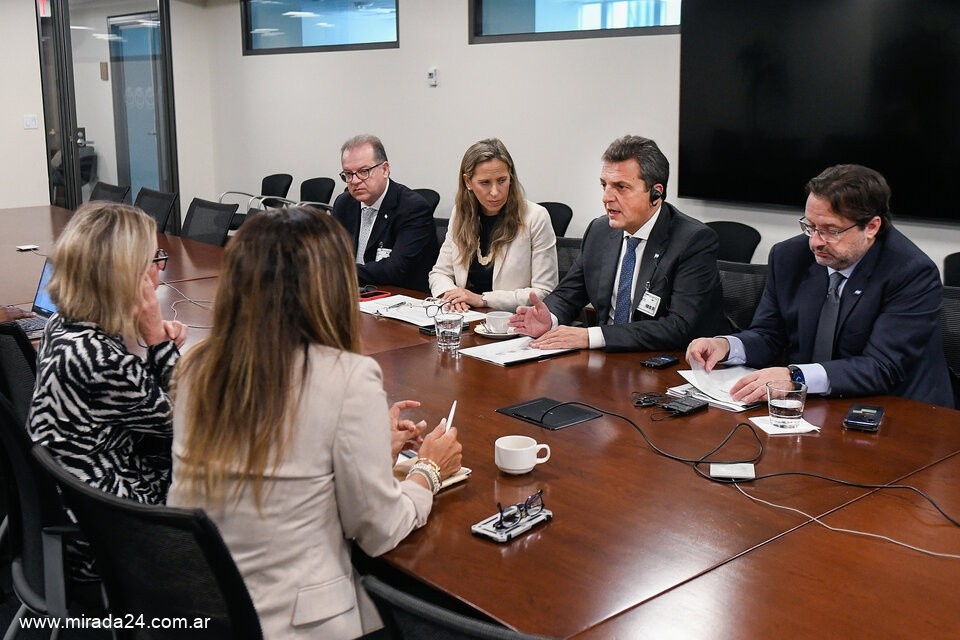 Posteriormente, Massa mantuvo un encuentro con Ilan Goldfjan, con quien se comprometieron desembolsos para Argentina por aproximadamente 700 millones de dólares para lo que resta del año. Se trata del financiamiento de tres proyectos, algunos de ellos ya en ejecución y lo que se financia es alguna etapa complementaria. Ellos son la construcción de un puente sobre el río Paraná para unir las costas de las provincias de Chaco y Corrientes; otro para obras de ampliación de la central hidroeléctrica binacional de Salto Grande, sobre el río Uruguay; y un tercer proyecto referido al prefinanciamiento a empresas de la economía del conocimiento para posibilitar el aumento de sus exportaciones.