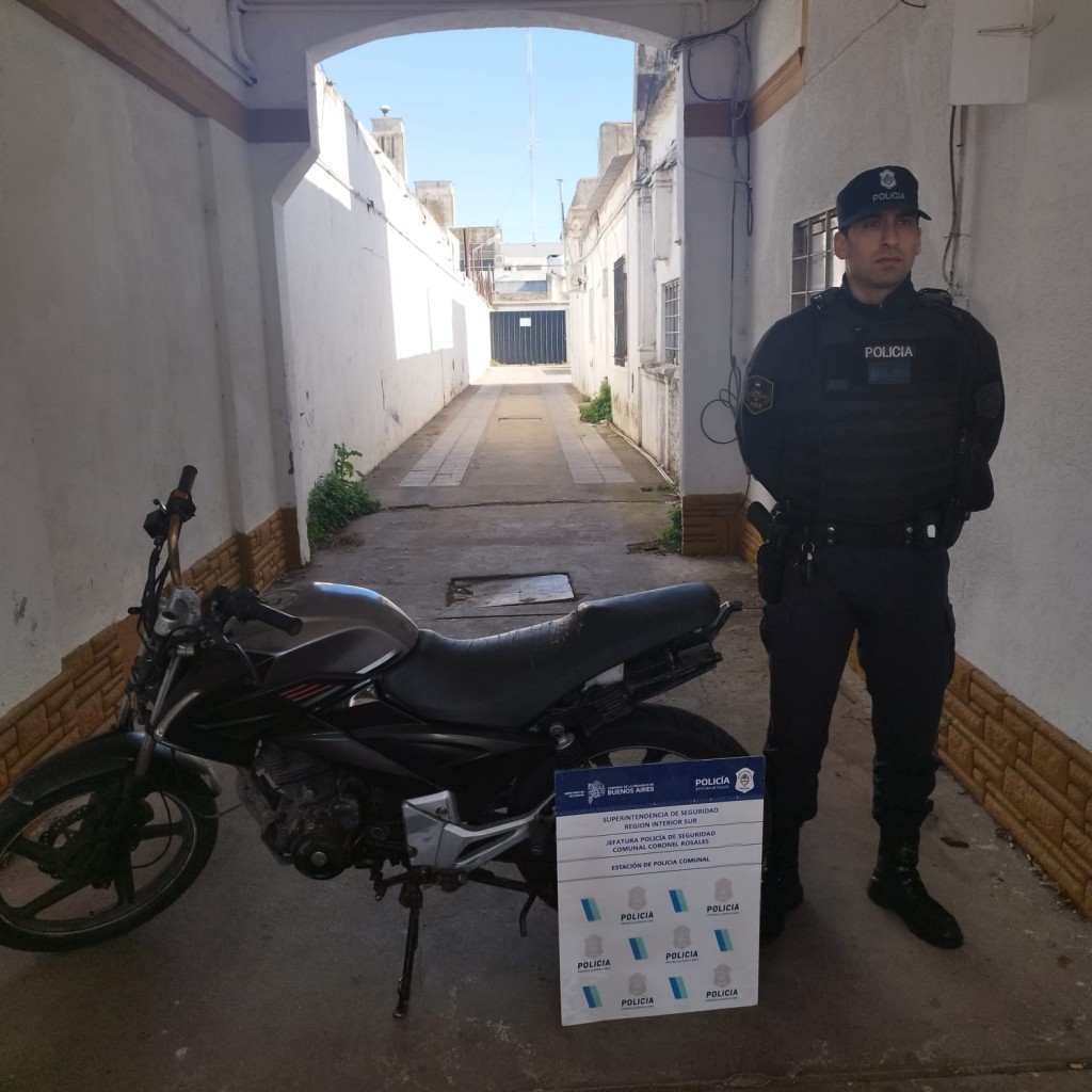 La moto habia sido denunciada como sustraída con fecha 19 cte de calle Irigoyen Nro 981.