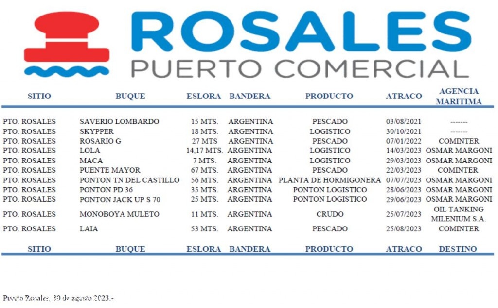 Puerto Rosales, informe de las actividades diarias, suministrado por el Consorcio de Gestión local.