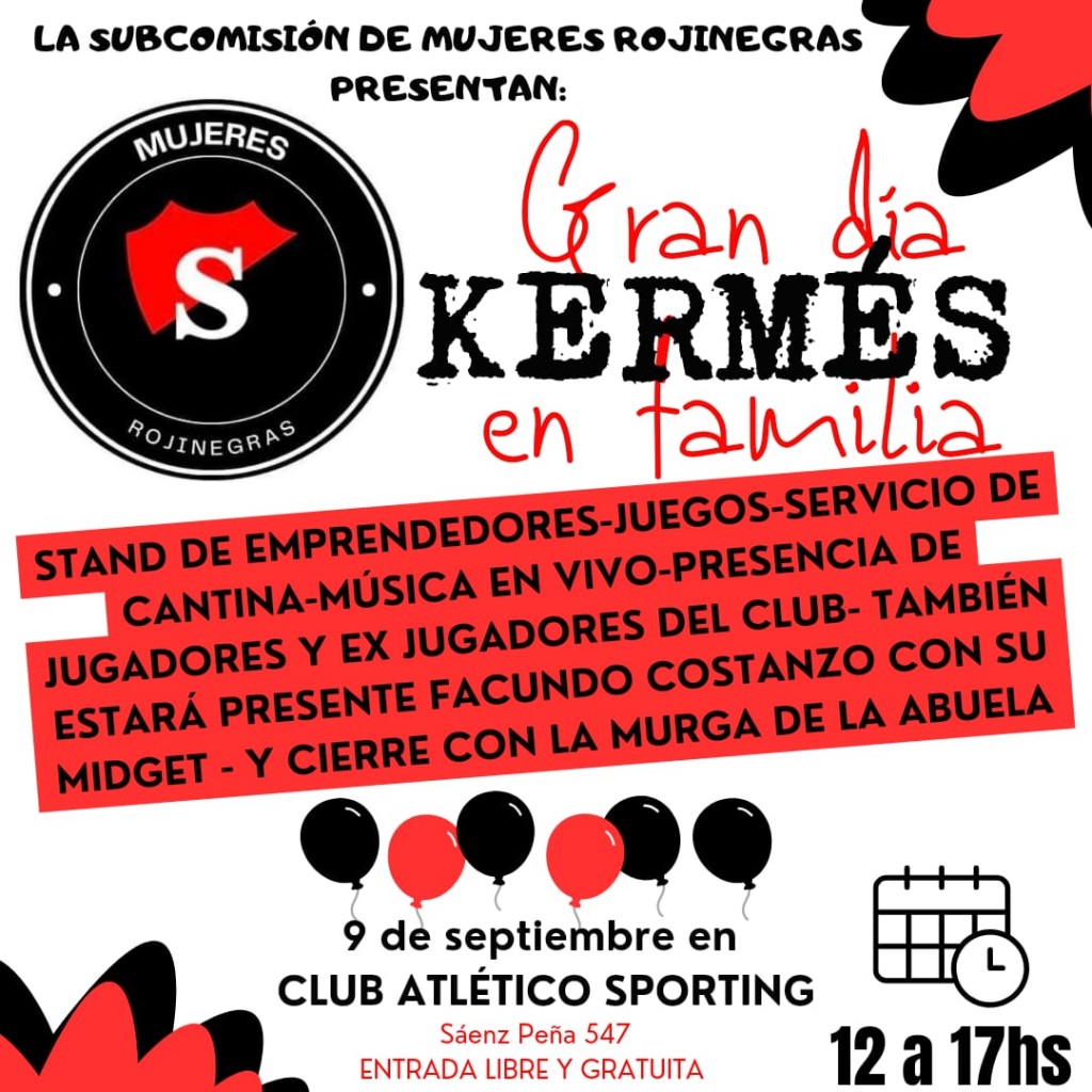 La subcomision de mujeres rojinegras del Sporting organiza e invita ala famila a pasar un dia agradable en el club, la jornada ten�dra la paricipacion de artistas,feriantes y jugadores del club,sabado 9 de septiembre desde a las 12 hs.