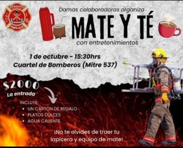La Comisión de Damas Colaboradoras de Bomberos Voluntarios invita a la comunidad a participar del encuentro «Mate y Té con entretenimientos» que ha organizado para el próximo 1 de Octubre en la sede del cuerpo