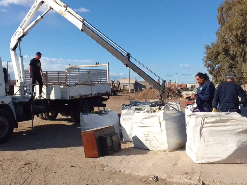 El personal de la Dirección de Protección Ciudadana, a cargo de Carlos Montero, realizó el trabajo de recepción, clasificando los residuos y luego cargándolos a un camión municipal para su traslado final a Olavarría.