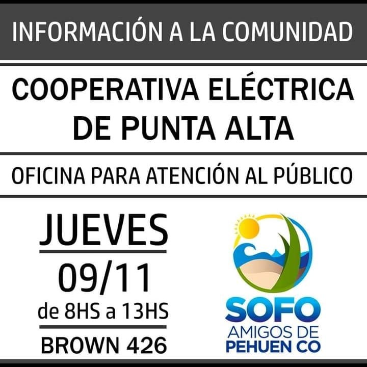 La cooperativa Eléctrica anuncio que a partir de este jueves los vecinos de la villa balnearia podrá contar con una oficina de atención al publico desde la 08 hs hasta las 13 hs.