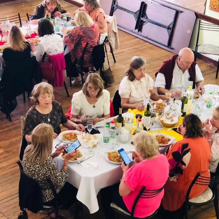 El clásico festejo de un nuevo aniversario de la sociedad española con paella incluida tuvo su almuerzo de festejo en el salón de conferencias con participaciones artísticas que dieron brillo a un día especial.
