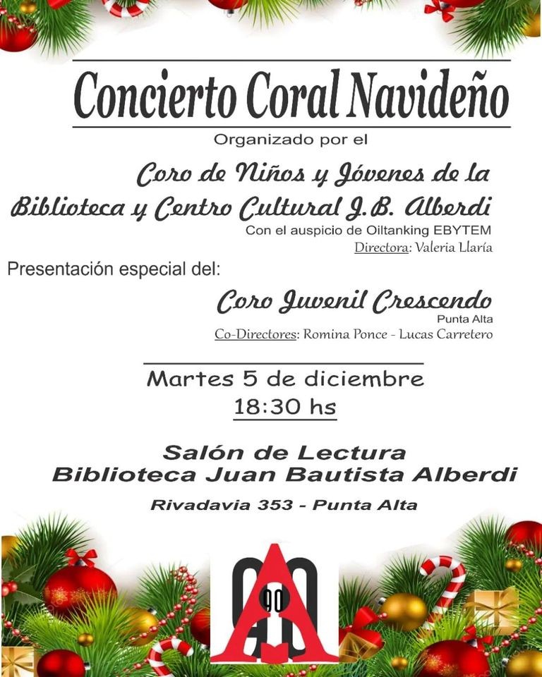 El coral de niños y jóvenes de la bilioteca Alberdi dirigidos por Valeria LLaria presentan el concierto anual en compania de el �coro juvenil Increscendo� y otros músicos que interpretaran diferentes villancicos en la antesala de los fiestas navideñas.