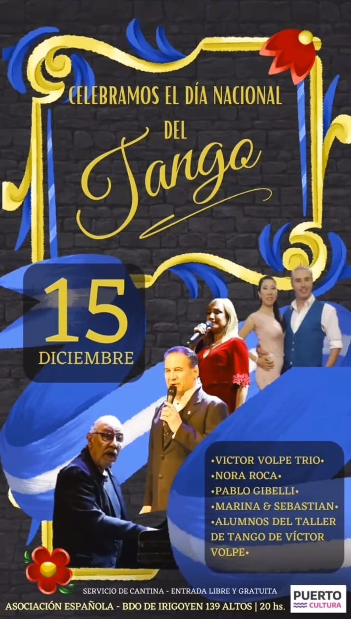 Celebrando el día nacional del Tango y con coordinación de Puerto Cultura y la dirección de cultura Municipal se realizara en la sociedad española un encuentro de lujo reencontrándose con la musica ciudadana y sus mejores exponentes locales, entrevista con el maestro Victor Volpe