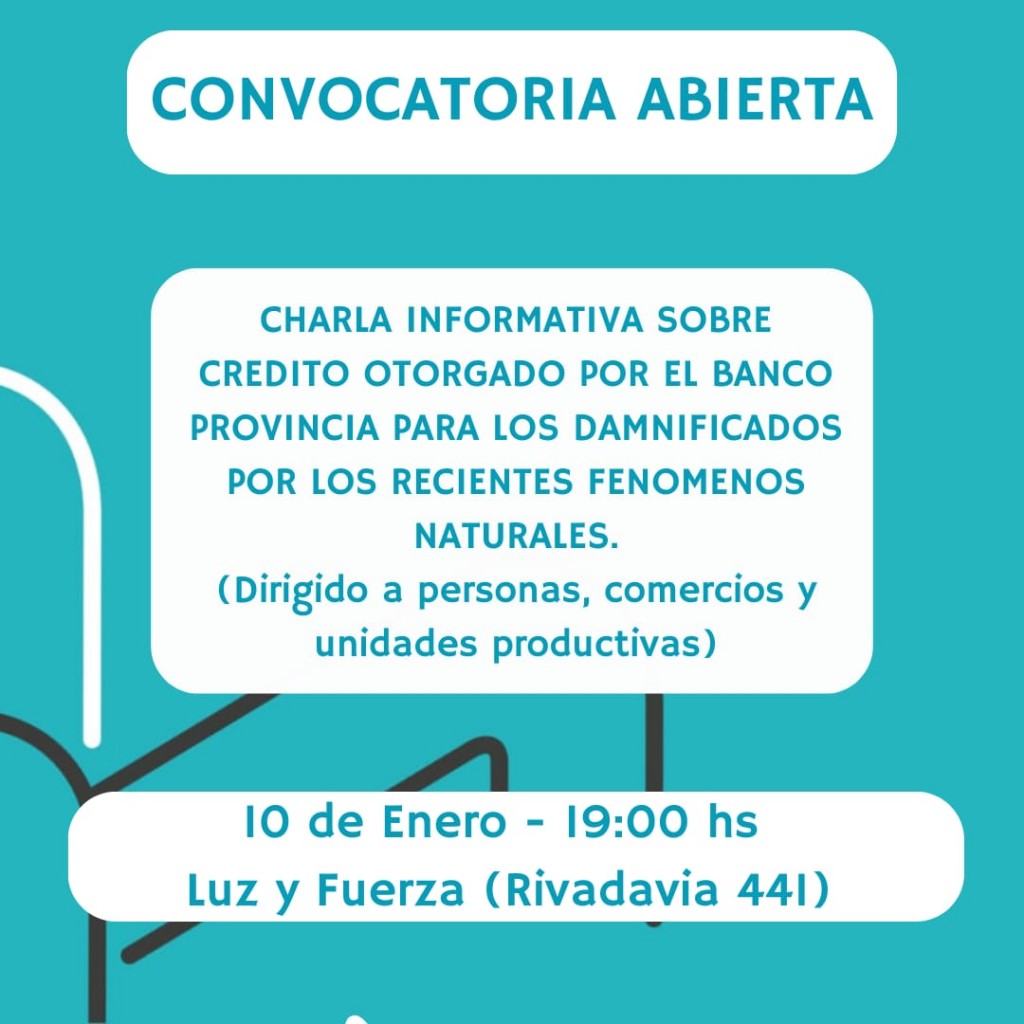 A tal efecto, desde el Municipio de Coronel Rosales, se ha organizado junto a representantes del Banco de la Provincia de Buenos Aires, un encuentro a fin de brindar información directa sobre las características de estos préstamos.