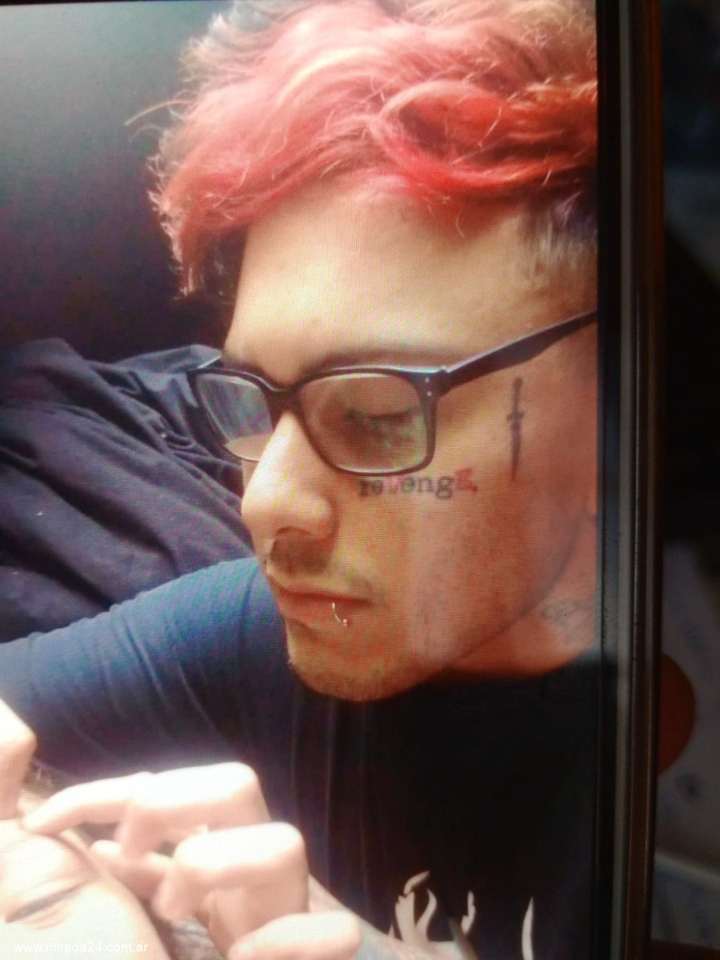 Por cualquier información comunicarse al 911 o al destacamento policial más cercano a su domicilio. CARACTERISTICAS: posee tatuajes en la cara, cuello, en el interior de las orejas, brazos, pechos, piernas. Utiliza lentes recetados con marcos en negro formato cuadrado. Se encuentra con un mechón del cabello teñido en rojo. Se retiró con unas zapatillas blancas, remera azul, bermuda negra y una mochila negra con detalles en color celeste.