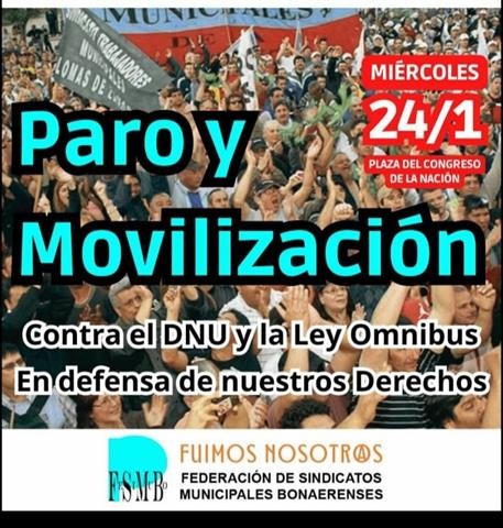 El Sindicato de Trabajadores Municipales Coronel Rosales ha informado a sus afiliados que este martes 24 de enero adherirán al paro nacional en contra del DNU.