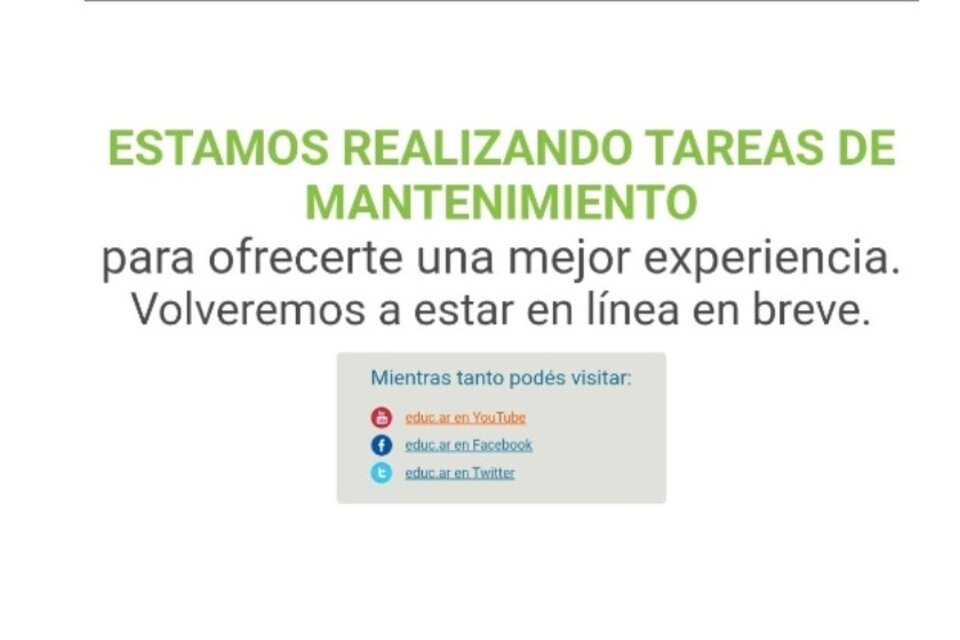 No tenemos más detalles del proceso ni de su duración. Tampoco fue un correo oficial sino un reenvío. Como podrán comprobar, el Portal educ.ar completo está fuera de línea, ninguna URL quedó en pie. Nada. Si alguien pone una URL que ya tenía o llega al Portal desde Google, va a ser direccionado hacia una página de mantenimiento”, explicó una trabajadora a través de una carta pública que posteó en sus redes para difundir la situación.