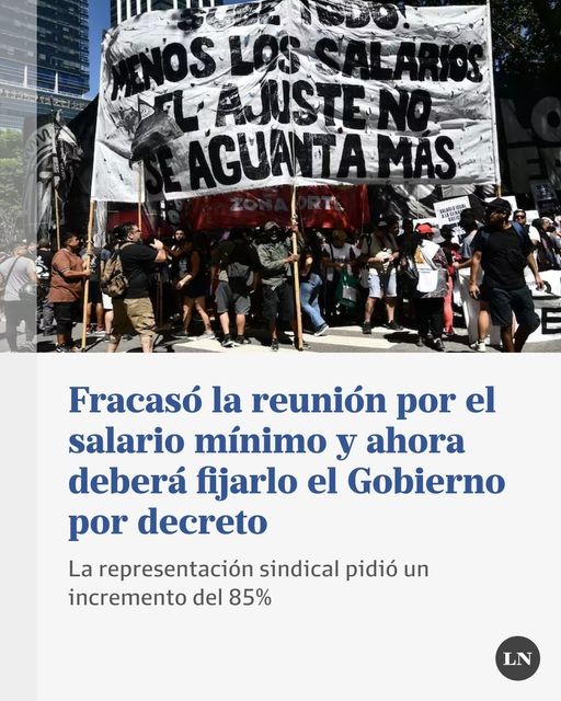 La reunión del Consejo del Salario no llegó a un acuerdo y no fue a causa de la tozudes de las organizaciones sindicales, sino más bien por la decisión del gobierno de Javier Milei de impedir una actualización del Salario Mínimo Vital y Móvil (SMVM) y los montos mínimos y máximos de la prestación por desempleo, con la complicidad de las organizaciones patronales. La CGT emitió un comunicado donde directamente acusa a los funcionarios de la Secretaría de Trabajo de tener una conducta "irresponsable" y, sobre todo, de "boicotear" cualquier posibilidad de acuerdo. Ante esta situación el Gobierno ahora laudará sobre el nuevo piso de estos ingresos. Entre los dirigentes sindicales existe la sospecha de que la Casa Rosada congelará el SMVM, que en la actualidad está en 156.000 pesos.
