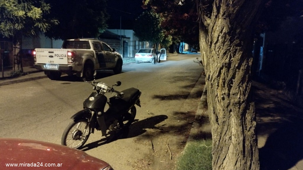 siendo 01:30 hs tomose conocimiento accidente de transito en Alvear y España este medio entre motovehiculo MOTOMEL BLITZ DOM 246-LHP, conducido por DARDO GARIBOTI (42) y FORD ESCORT DOM BPG-104 conducido por CASTRO RODRIGO (25). Conductor vehiculo menor trasladado nosocomio Local por presentar fractura de tibia y perone. Solicitose policía científica, secuestro de vehículos, se instruyen actuaciones