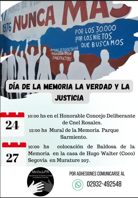En el mes de la Memoria, invitación abierta a asistir a nuestros actos, nos encontramos el domingo 24 en los diferentes actos que programamos.