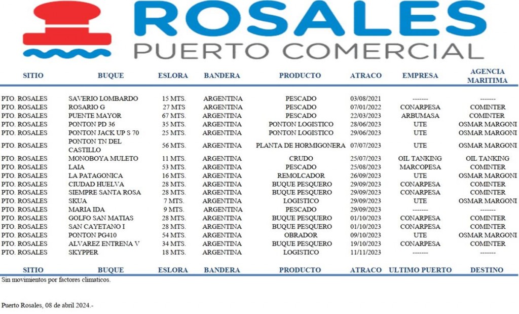 El Consorcio de Gestión de Puerto Rosales informa sobre las actividades producidas en el inicio del mes de abril.