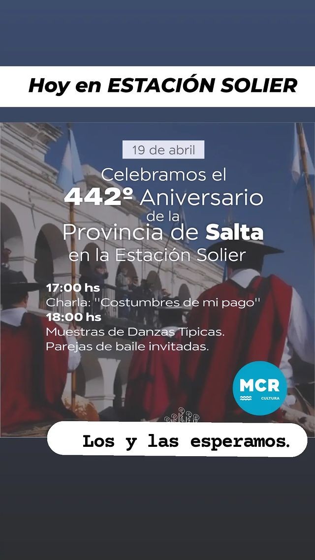 Hoy viernes 19 de abril festejamos los 442 años de la provincia de Salta con una Charla y muestras de danzas típicas desde las 18 hs..