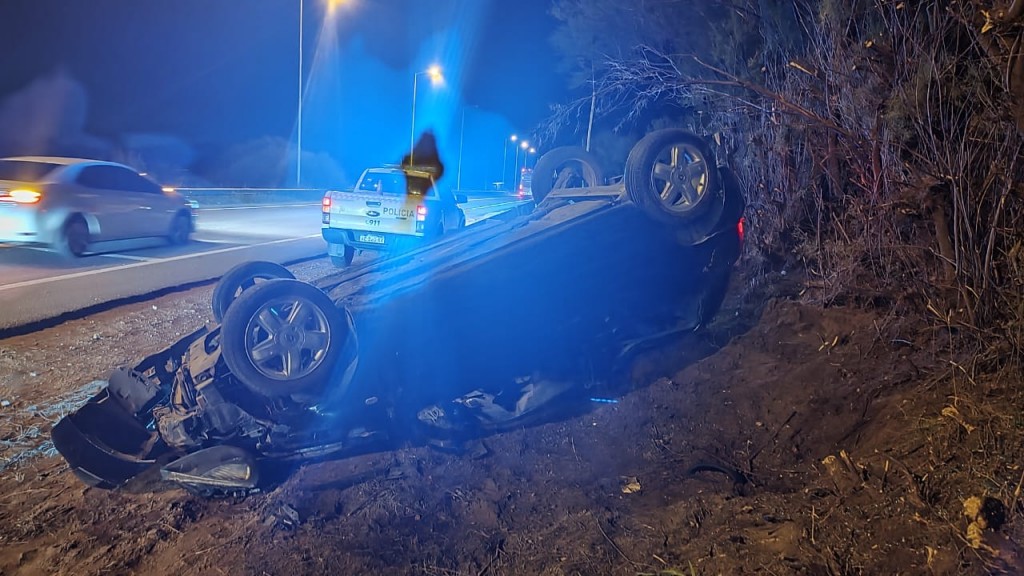 A causa del despiste del rodado hacia banquina para posteriormente volcar la unidad y golpear contra columna de cableado sistema TV .El siniestro fue sobre ruta 229 a la altura de calle M. Cane alrededor de las 19:30 hs.