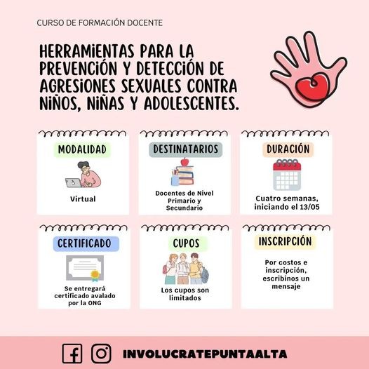 Por consultas de costo e inscripción comunicarse vía redes sociales: Involucratepuntaalta (Instagram y Facebook)