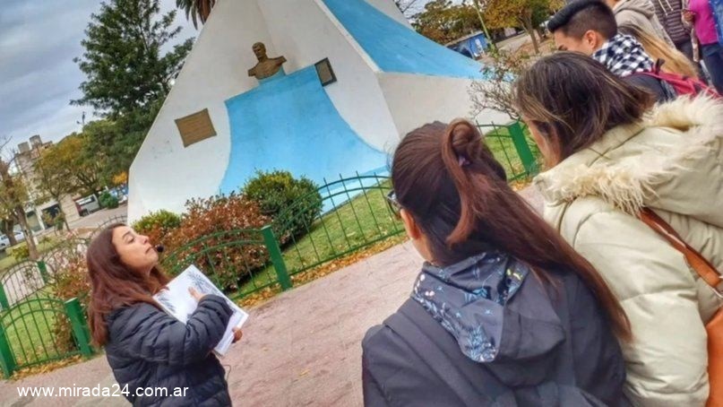 El contingente se desplazó desde Irigoyen y Colón hasta la plaza Belgrano, guiado por la profesora Romina Amarfil, del Archivo, quien fue explicando el origen de nuestra ciudad y su evolución histórica-arquitectónica durante la primera mitad del siglo XX, deteniéndose en sitios significativos para la historia puntaltense.