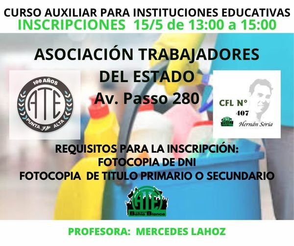 El curso será dictado los días lunes y martes, de 8:30 a 11:30 horas, a cargo de Marcela Lahoz, quien forma parte del equipo del CEF Nº 407, las inscripciones son el 15 de mayo de 13 a 15 hs.