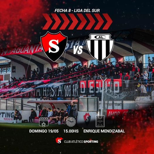 La Liga del sur se pone cada ves mas interesante, Sporting que recibe al segundo Liniers necesita sacar un buen resultado ya que los numeros y el funcionamiento no lo estan acompañando hasta este momento, es un partido clave!, si porque Liniers es un gran equipo y el rojo debe mostrar que esta a la altura de este rival que viene sin dudar llega para llevarse un gran resultado y asi mantenerse como serio candidato.   Las claves de este partido Sporting tiene que recuperar esa disciplina y concentracion que supo lucir en la segunda ronda del torneo anterior donde supo estar en lo mas alto de las posiciones y no recibir goles encontra, que lo muestre como un equipo solido en defensa,prolijo en el medio y ambicioso en el ataque, tiene un tecnico muy capas que entiende de jugar partidos dificiles, un equipo de gran nivel( por alli las lesiones no acompañaron), un club prolijo en lo institucional y una hinchada que mas de un club querria tener, no es presion, es simplemente que los jugadores disfruten de lo que significa jugar en Sporting, colocarse el chip de equipo ganador y llevar el cuchillo entre los dientes desde el minuto cero.   Detalles de la jornada del domingo dónde el Rojinegro recibe a Liniers. ¡Todos al Mendizabal! Fecha 8ª club atletico liniers 15.00hs Enrique Mendizabal Tercera División 12.45hs   ¡Así se jugará el resto dela la 8° Fecha en la Primera A "Raúl Dignani"! PÚBLICO VISITANTE con LIGA SEGURA: • San Francisco - Villa Mitre • La Armonía - Huracán SIN PÚBLICO VISITANTE: • Olimpo - Bella Vista   El promocional tambien tendra una fecha electrizante   ¡Quedó definida la 8° Fecha en la Primera B "Marco Ruperez"! PÚBLICO VISITANTE con LIGA SEGURA: • Tiro Federal - Dublin SIN PÚBLICO VISITANTE los siguientes partidos: • Pacífico (Cabildo) - Pacífico • Libertad - Comercial     Rosario vs Sansinena -Sábado 18 de Mayo. 15:00 hs. Bruno Lentini. Sin público visitante.