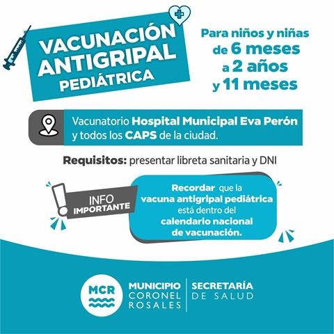 La Secretaría de Salud informa a la comunidad Rosaleña que se encuentra disponible la vacuna antigripal pediátrica, para niños y niñas de 6 meses a 2 años y 11 meses en todos los vacunatorios.