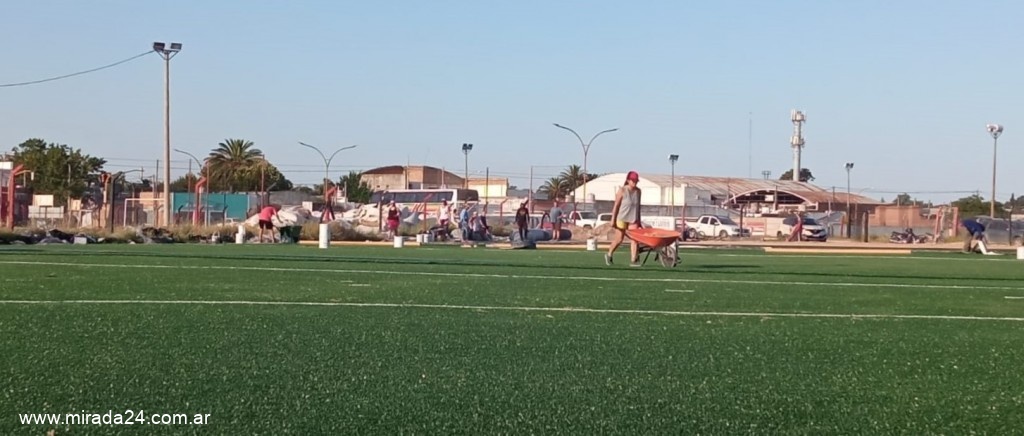 Es posible este proyecto gracias a varios actores que se pusieron cada uno su parte, el club aporto financieramente mediante diferentes formas , la subcomision que organizo a las familias y en esta ultima etapa que es la mas dura se sumo este grupo de gente de la cooperativa Almafuerte con Gustavo Aguero al frente que dicho sea de paso es papa de una de las jugadoras, son 200 toneladas de arena que hay que volcar en la alfombra y es un trabajo importante por eso hago esta especial mension,de esta manera y acudiendo al ingenio en muchas oportunidades se puede llegar a concretar, pensemos que el presupuesto total sin contar aportes extras el monto fue de 12 millones de pesos, 18 millones seria el neto digamos aprox.Trabajando en equipo y dando continuidad a ese trabajo las cosas se pueden lograr, muchos son los que colaboran, el municipio por cedernos las maquinas aplanadora,el club siempre listo para colaborar en resover los problemas que se vienen,etc.