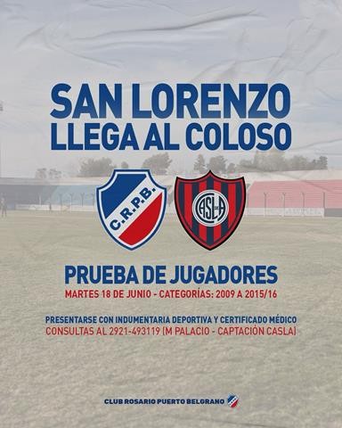 El Club Rosario informa a todos los interesados que este martes 18 de Junio se estará realizando prueba de jugadores en las distintas categorías, la prueba es totalmente gratuita y para chicos de cualquier Club.