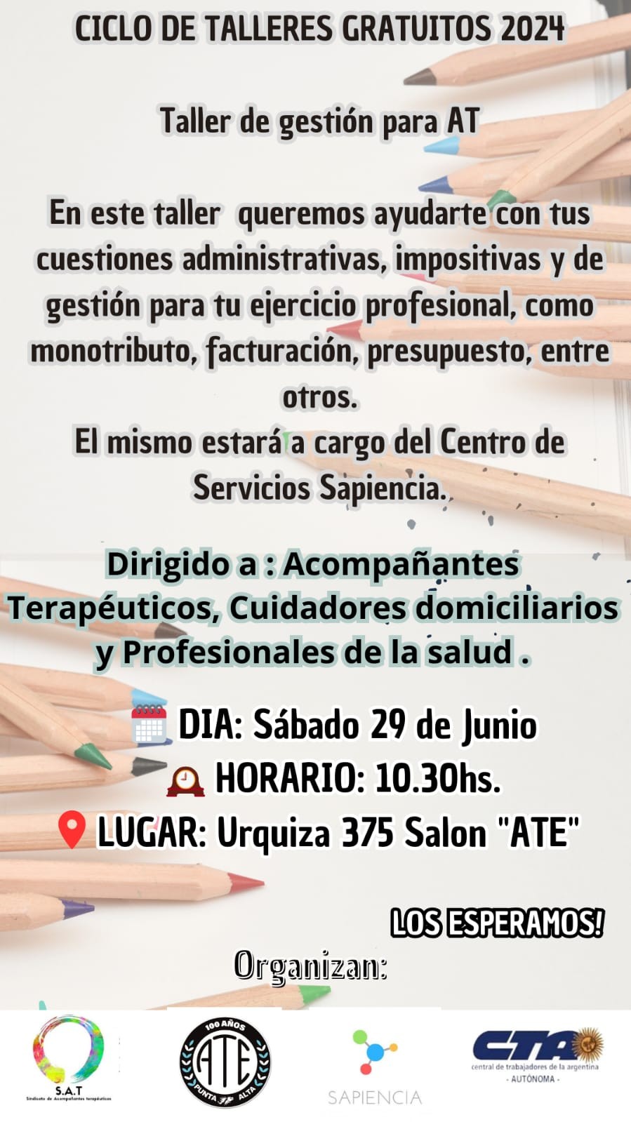 En esta ocasión, el taller está especialmente dirigido a acompañantes terapéuticos, cuidadores domiciliarios y profesionales de la salud. El objetivo es proporcionarles herramientas prácticas y conocimientos esenciales en temas administrativos, impositivos y de gestión para mejorar su ejercicio profesional.