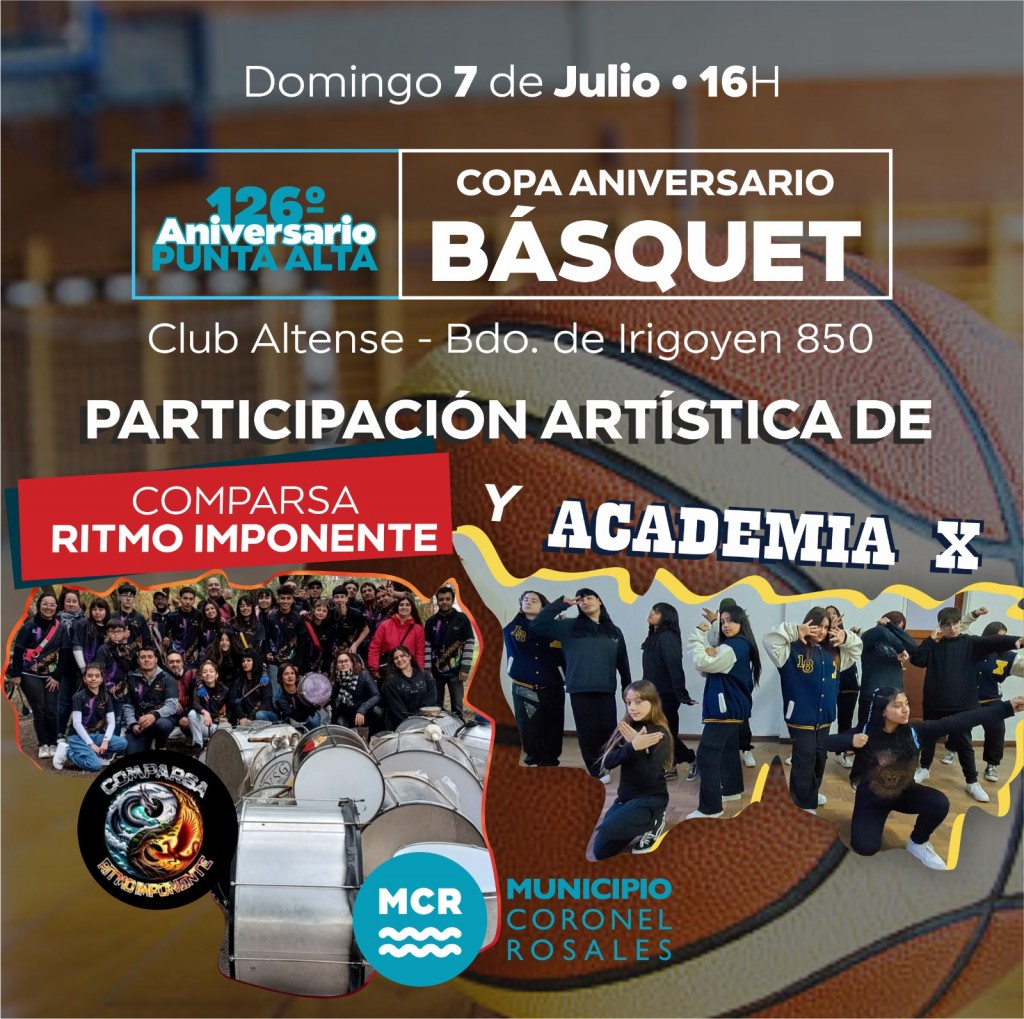desde la Secretaría de Cultura y Deportes se organizó conjuntamente con los cinco clubes de la ciudad (Altense, Ateneo, Espora, Pellegrini y Los Andes) la “Copa Aniversario Básquet” que se llevará a cabo este domingo 7 de julio, en el Club Altense (Bdo de Irigoyen 850).