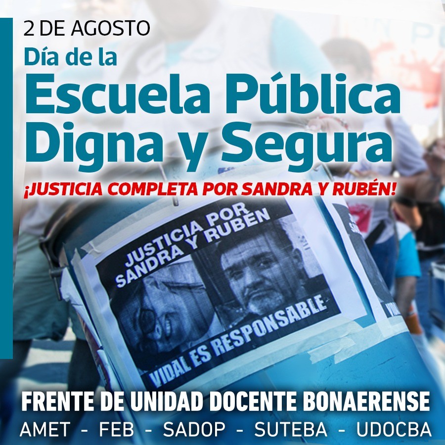 Suteba tomó la iniciativa para que en toda la provincia se estableciera el 2 de Agosto como "Día de la Escuela Pública Digna y Segura".