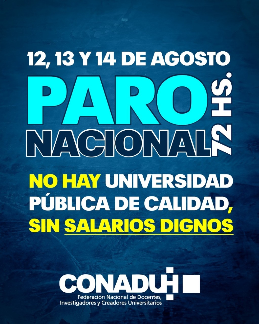 12, 13 y 14 de agosto: Paro Nacional de 72 horas en las Universidades Nacionales