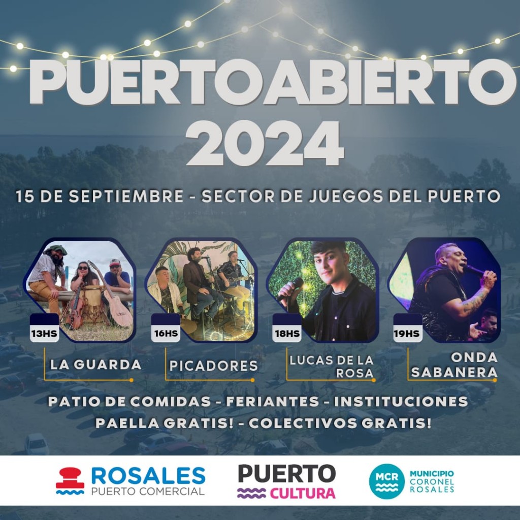 Este domingo 15 de septiembre, el Municipio de Coronel Rosales y el Consorcio de Gestión del Puerto Rosales invita a toda la comunidad a celebrar el 116° Aniversario del Puerto, un evento lleno de entretenimiento, música y gastronomía.